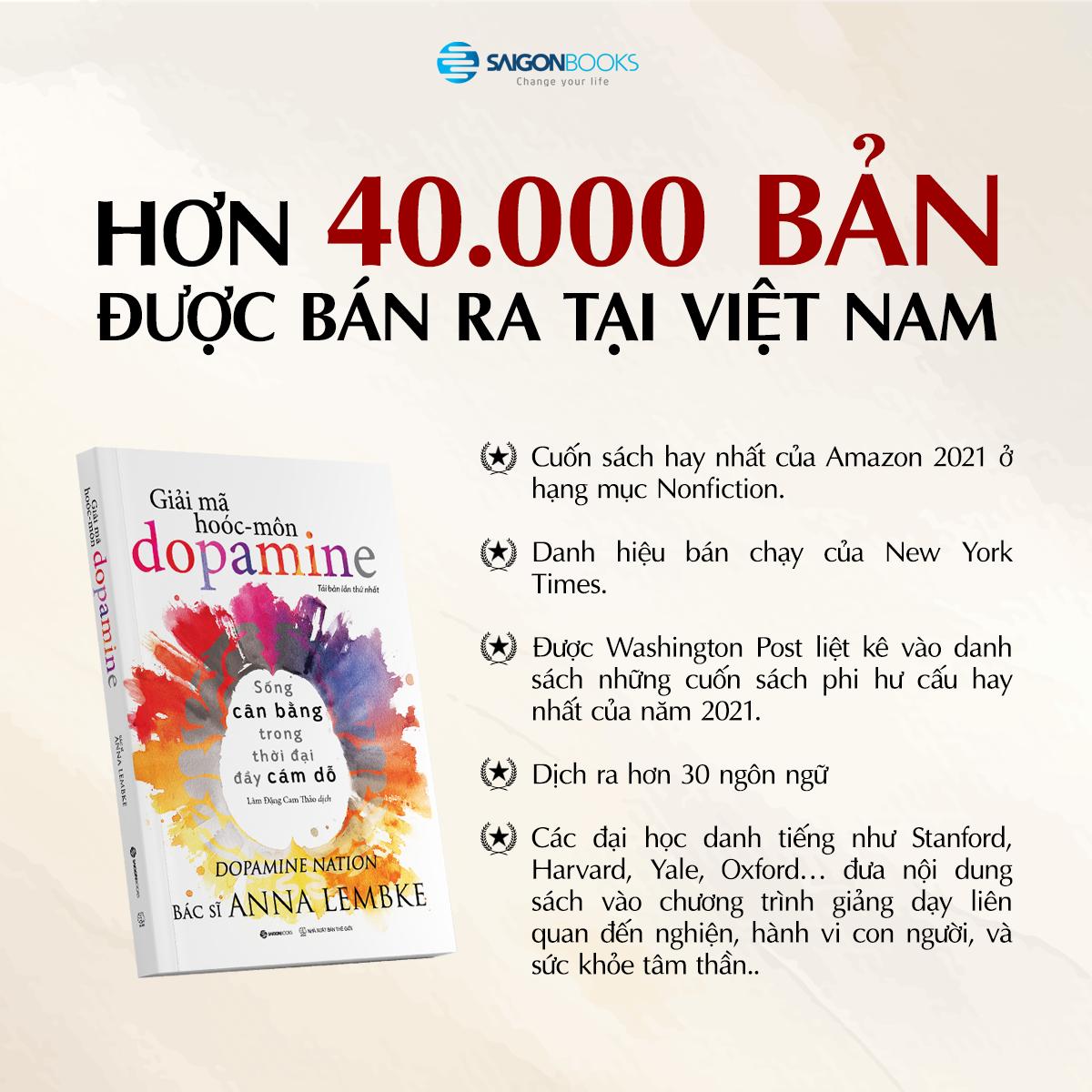 Giải mã hooc môn Dopamine được ví như quyển từ điển “tất tần tật” về Dopamine cùng những kiến thức tâm lý học, thần kinh học đầy thú vị. Bên cạnh đó, sách còn cung cấp những biện pháp hiệu quả để chúng ta lấy lại được cuộc sống cân bằng giữa hằng hà sa số những cám dỗ.