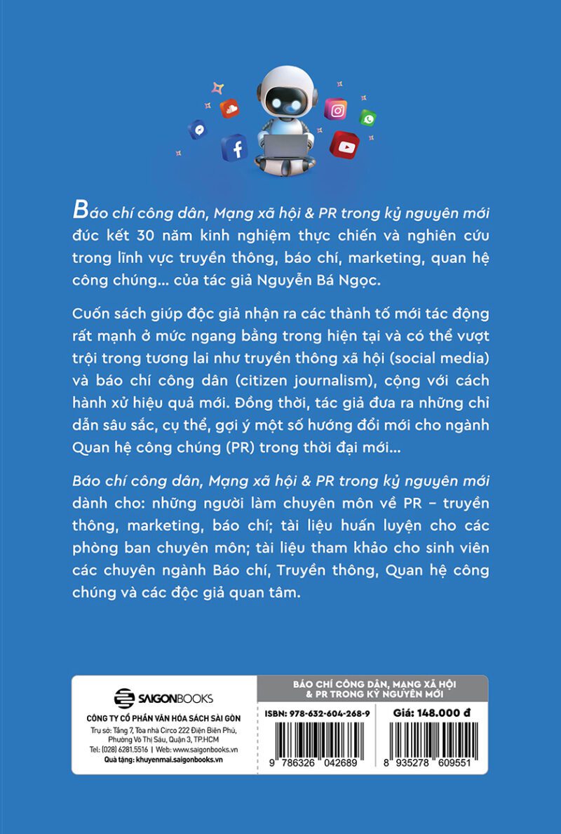 Trong thời đại mà một chiếc điện thoại có thể thay thế cả tòa soạn, “Báo chí công dân, Mạng xã hội & PR trong kỷ nguyên mới” là một cuốn sách cần thiết để hiểu rõ sự chuyển mình mạnh mẽ của truyền thông hiện đại. Tác giả Nguyễn Bá Ngọc không chỉ kể lại các cột mốc định hình báo chí công dân mà còn đưa ra bức tranh toàn cảnh về sự phát triển, cơ hội và thách thức của báo chí, mạng xã hội và PR trong bối cảnh công nghệ bùng nổ.