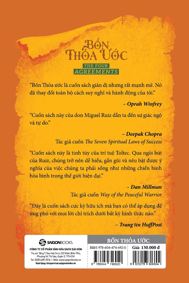 Trong Bốn thỏa ước, don Miguel Ruiz tiết lộ nguồn gốc của niềm tin tự giới hạn bản thân cướp đi niềm vui và tạo ra đau khổ không cần thiết. Dựa trên sự khôn ngoan của Toltec cổ xưa, Bốn thỏa ước đưa ra một quy tắc ứng xử mạnh mẽ có thể nhanh chóng biến cuộc sống của chúng ta sang một trải nghiệm mới về tự do, hạnh phúc thực sự và tình yêu.