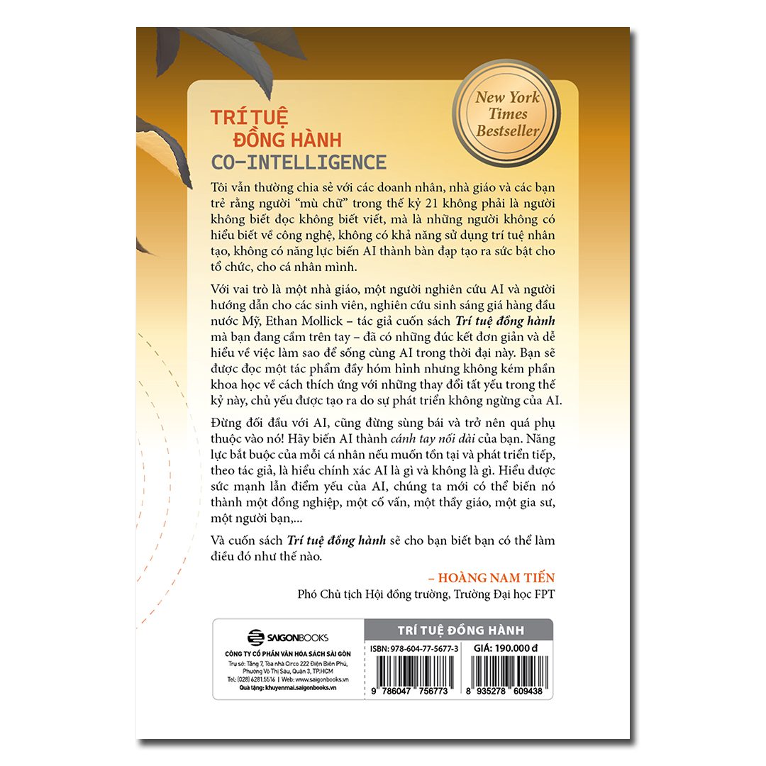 Trong Trí Tuệ Đồng Hành, Ethan Mollick – giáo sư tại trường Wharton và là một trong những chuyên gia hàng đầu về đổi mới và công nghệ – mang đến một góc nhìn thực tế, dễ hiểu và ứng dụng cao về cách AI đang định hình lại mọi mặt của cuộc sống. Không chỉ phân tích về công nghệ, cuốn sách này còn giúp bạn hiểu rõ cách AI có thể giúp bạn làm việc hiệu quả hơn, sáng tạo hơn và thậm chí đưa ra những quyết định thông minh hơn.