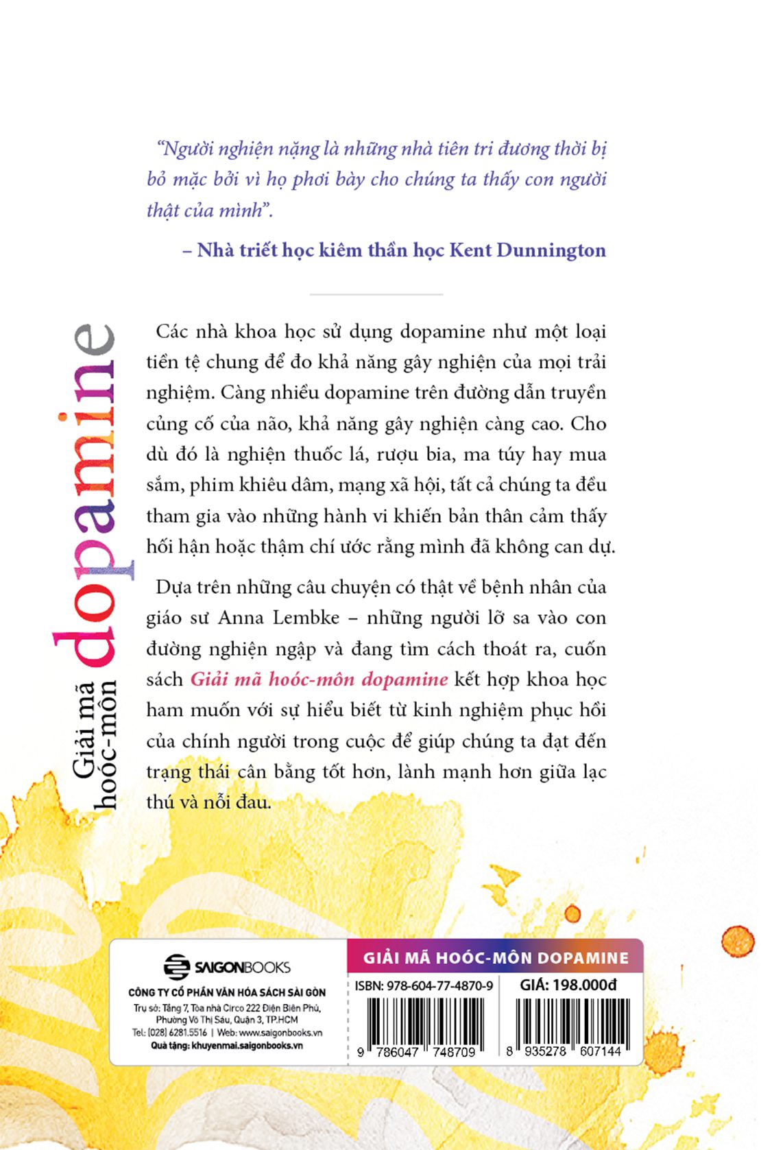 Quyển sách Giải Mã Hoóc-môn Dopamine này nói về các chủ đề xoay qua “lạc thú”. Nó cũng nói về nỗi đau. Nhưng trên hết, nó nói về mối quan hệ giữa lạc thú và nỗi đau, cũng như tầm quan trọng của việc hiểu được mối quan hệ đó để sống một cuộc đời đúng nghĩa.