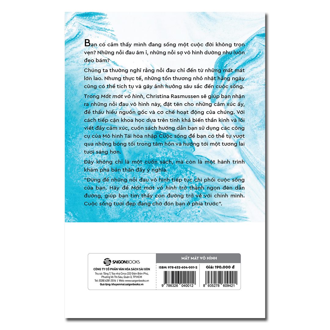 Trong cuốn sách Mất mát vô hình, tác giả Christina Rasmussen đã chỉ ra rằng những tổn thương âm thầm này có thể ảnh hưởng sâu sắc đến cuộc sống của chúng ta như thế nào. Cuốn sách không chỉ giúp độc giả nhận diện những mất mát vô hình mà mình đã trải qua, mà còn cung cấp các công cụ để chữa lành và tìm lại chính mình.