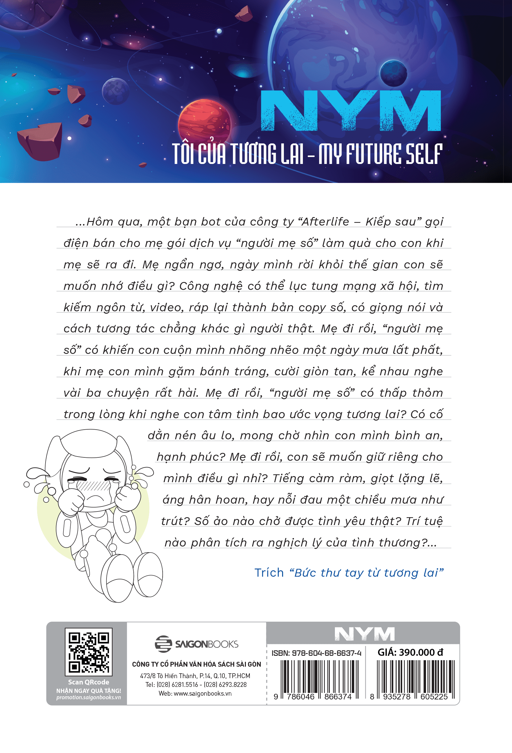 Với NYM – Tôi của tương lai, tác giả Nguyễn Phi Vân sẽ khiến chúng ta đi lạc vào một thế giới mới: nơi một “con robot” luôn tự nhận mình là người hơn một con người; nơi hai AI bàn luận về sex; nơi AI giải nghĩa cho chúng ta những phát minh sẽ định hình thế kỷ mới...