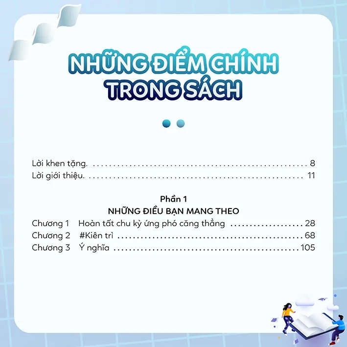 - Phần đầu cuốn sách giải thích 3 nguồn nội lực mà chúng ta mang theo bên mình: chu kỳ ứng phó căng thẳng, “bộ kiểm tra” (cơ chế kiểm soát cảm xúc thất vọng của não) và ý nghĩa cuộc sống.