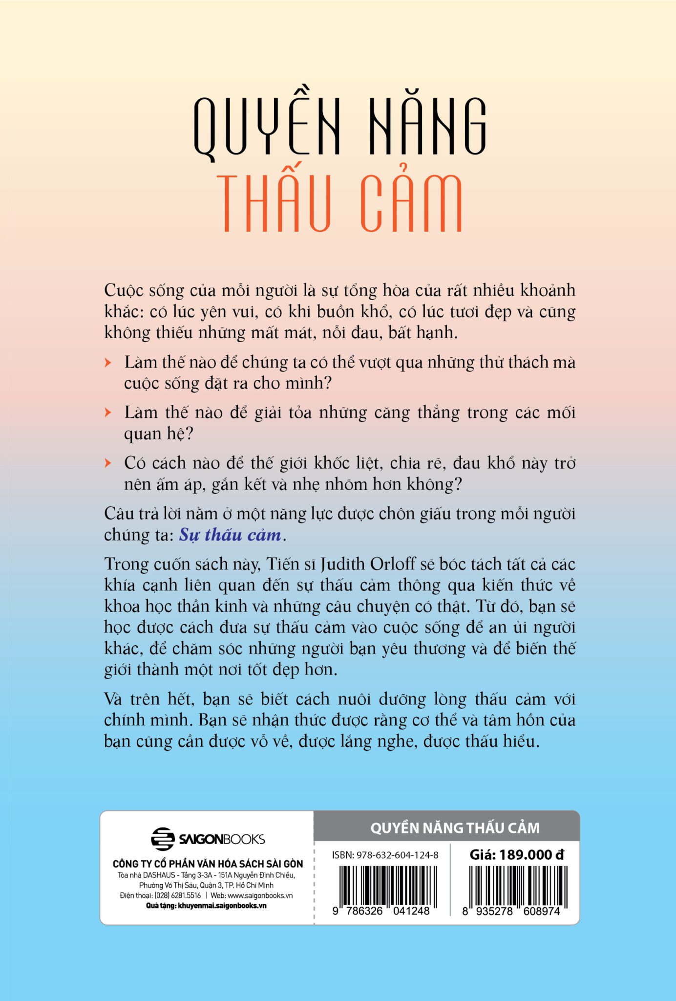 Trong thời đại phân cực, ồn ào và kiệt sức cảm xúc như hiện nay, sự thấu cảm không còn là một phẩm chất xa xỉ – mà trở thành một kỹ năng thiết yếu. Trong Quyền năng thấu cảm, bác sĩ Judith Orloff – một bác sĩ tâm thần đồng thời là một người thấu cảm – mang đến một cẩm nang sâu sắc và dễ áp dụng giúp mỗi người học cách kết nối với trái tim mình, để sống mạnh mẽ mà không bị kiệt sức bởi cảm xúc.