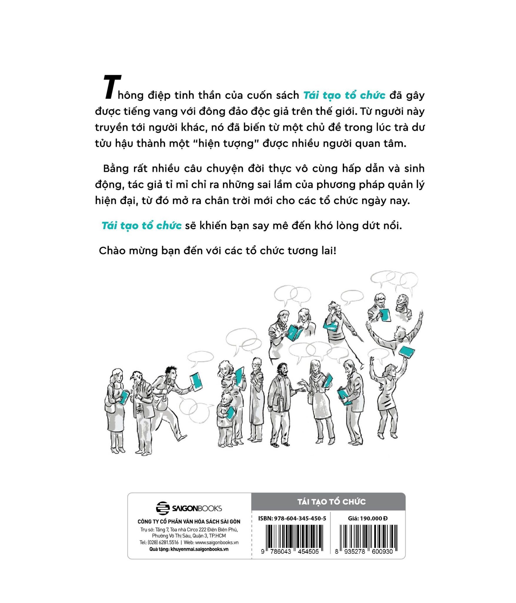 Đó là lí do chúng tôi tìm đến Tái tạo tổ chức – một cuốn sách thôi thúc chúng ta khám phá bản thân để đạt được hạnh phúc chân chính bằng cách tạo ra các mối quan hệ đích thực xung quanh mình. “Đích thực” ở đây có nghĩa là những mối quan hệ được tạo ra từ sự thấu hiểu, tin tưởng, lòng nhân ái trên nền tảng minh bạch và cân bằng. Bởi tính chủ động, phong phú và chân thành của chúng, những mối quan hệ này đôi lúc khiến ta bị tổn thương, nhưng qua những tổn thương tích cực đó, chúng ta sẽ nhanh chóng trưởng thành, sẽ cảm thấy rằng mình thực sự sống.