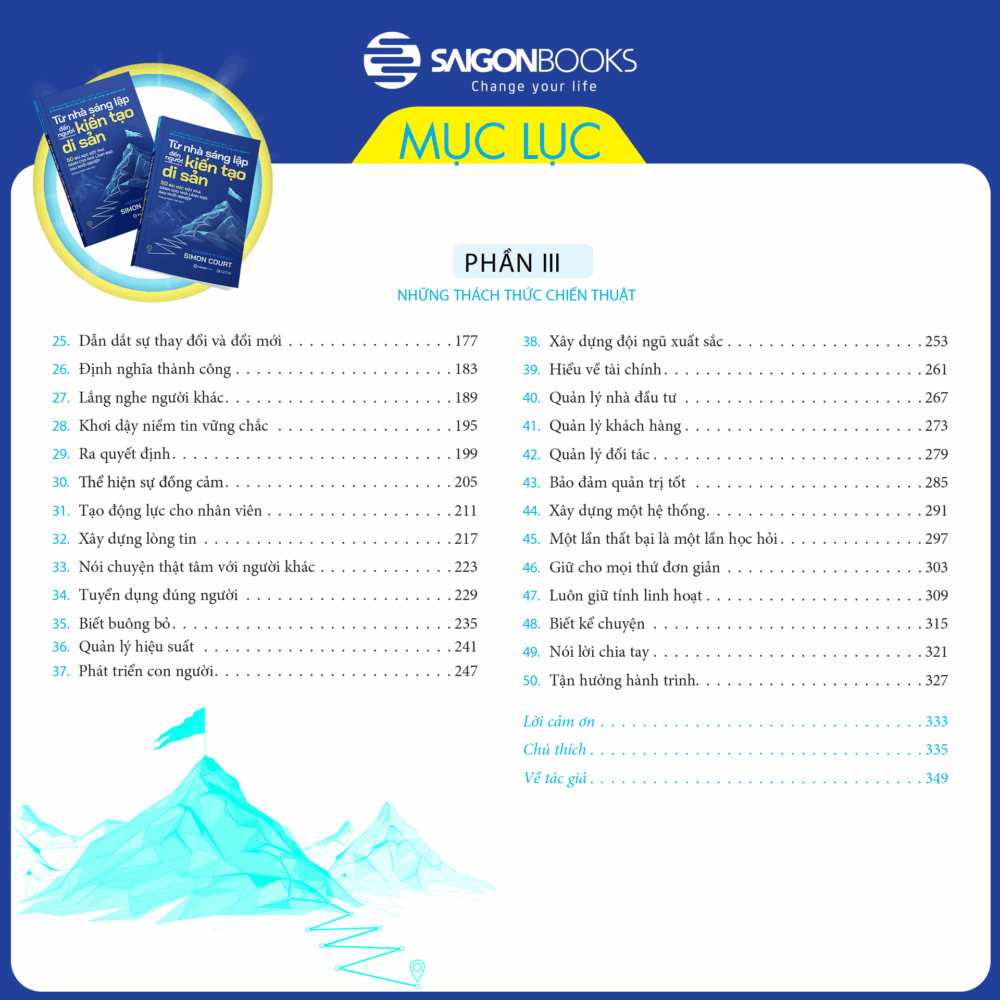 "Làm người sáng lập đã khó. Từ người sáng lập trở thành nhà lãnh đạo xuất sắc càng khó hơn.". Đó là sự đúc kết đầy thấu cảm của Simon Court – chuyên gia huấn luyện lãnh đạo với hơn 25 năm kinh nghiệm đồng hành cùng các "kỳ lân" tỷ đô. Cuốn sách “Từ nhà sáng lập đến người kiến tạo di sản” là bản lộ trình dành cho những ai đang muốn thoát khỏi sự hỗn loạn để xây dựng một doanh nghiệp vĩ đại và bền vững.