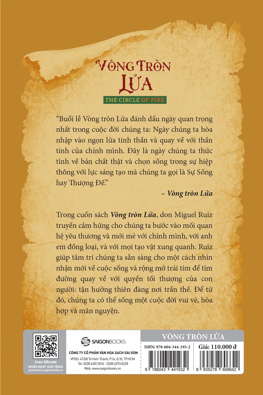 Trong Vòng tròn lửa, don Miguel Ruiz truyền cảm hứng cho chúng ta bước vào một mối quan hệ mới và đầy yêu thương với chính mình, với đồng loại và với tất cả tạo vật. Thông qua tuyển chọn những bài luận hay, những lời cầu nguyện và những bài thiền có hướng dẫn, Ruiz chuẩn bị tâm trí của chúng ta cho một cách nhìn mới về cuộc sống và mở rộng tâm hồn chúng ta để tìm đường trở lại đúng nghĩa sinh thành của chúng ta: thiên đường trên trái đất. Khi bắt đầu mỗi bài giảng và lớp học của mình, don Miguel mở đầu bằng một bài thiền hoặc lời cầu nguyện để truyền cảm hứng và khơi gợi khung tâm trí dễ tiếp thu, đồng thời củng cố các khái niệm đang được giới thiệu. Tương tự như vậy, độc giả có thể sử dụng cuốn sách này như một nguồn cảm hứng trong những lúc cần thiết hoặc như một nguồn động viên hàng ngày. Xuyên suốt The Circle of Fire, Ruiz đề cập đến các chủ đề như: Sự thật, sự tha thứ, tình yêu, lòng biết ơn, lòng nhân ái, sự tĩnh lặng nội tâm. Kết quả là một cuộc sống được sống trong niềm vui, sự hài hòa và mãn nguyện.